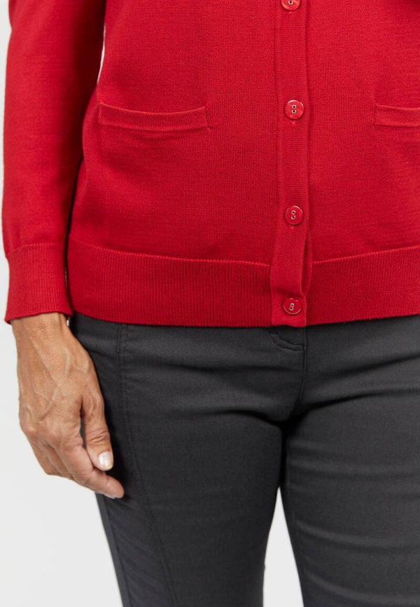 Een heerlijk fijn gebreid vest met zakken aan de voorzijde. Heeft een ronde halslijn met knoopjes tot aan de onderkant en lange mouwen. Gemaakt van zacht en comfortabel materiaal.
