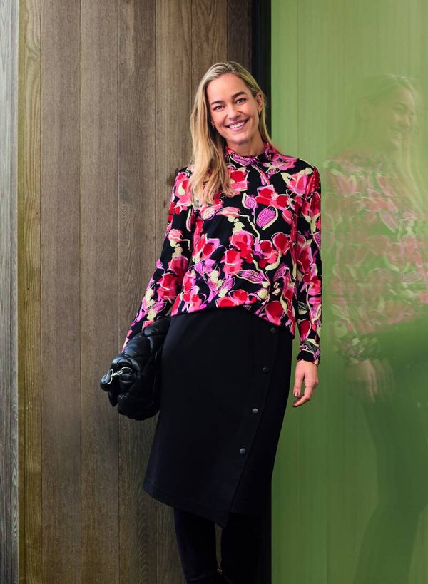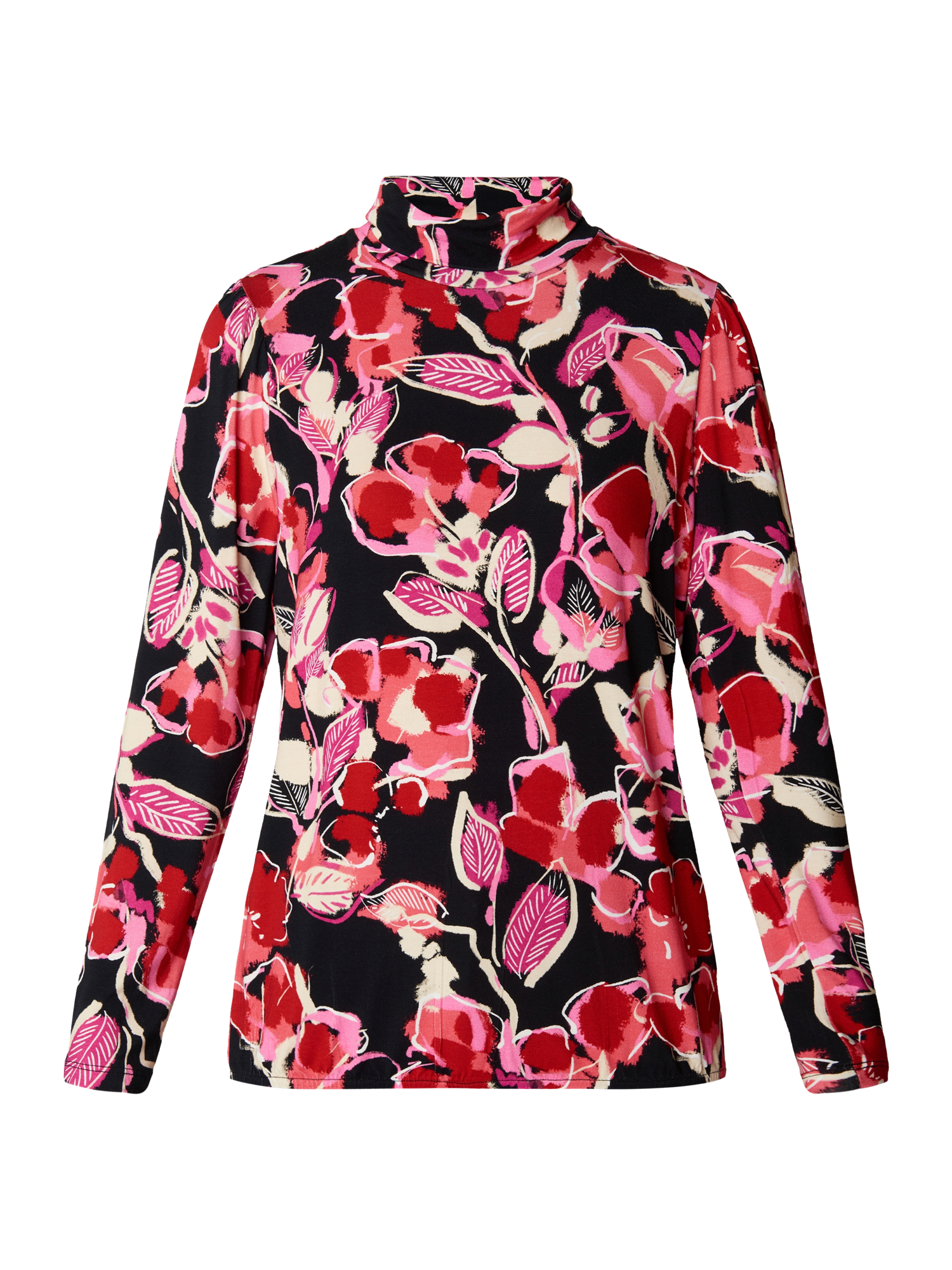 Kleurrijk T-shirt gemaakt van viscose en elasthaan, van Brandtex. Dit T-shirt heeft een rolkraag en een elastische rand aan de onderkant. Het heeft lange, smalle mouwen. Het prachtige patroon geeft een mooie uitstraling aan het T-shirt.
