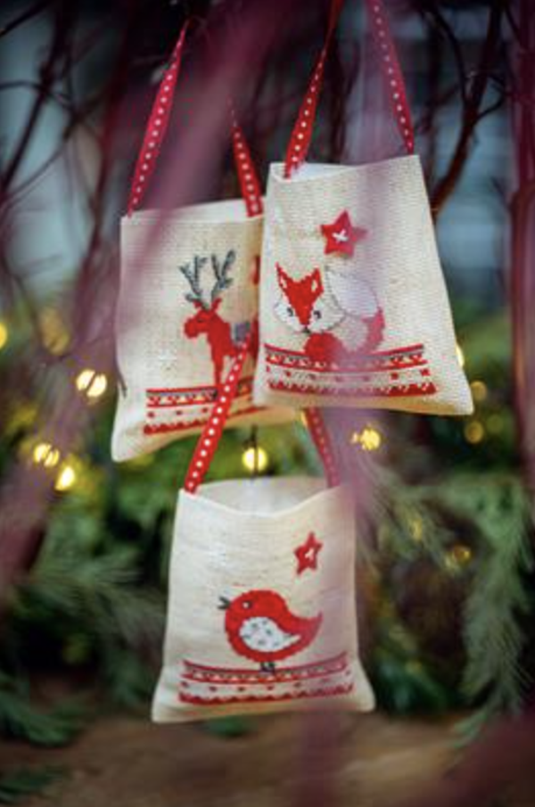 Vervaco - Borduurpakket - Cadeauzakje Kit Kerstdiertjes Set Van 3