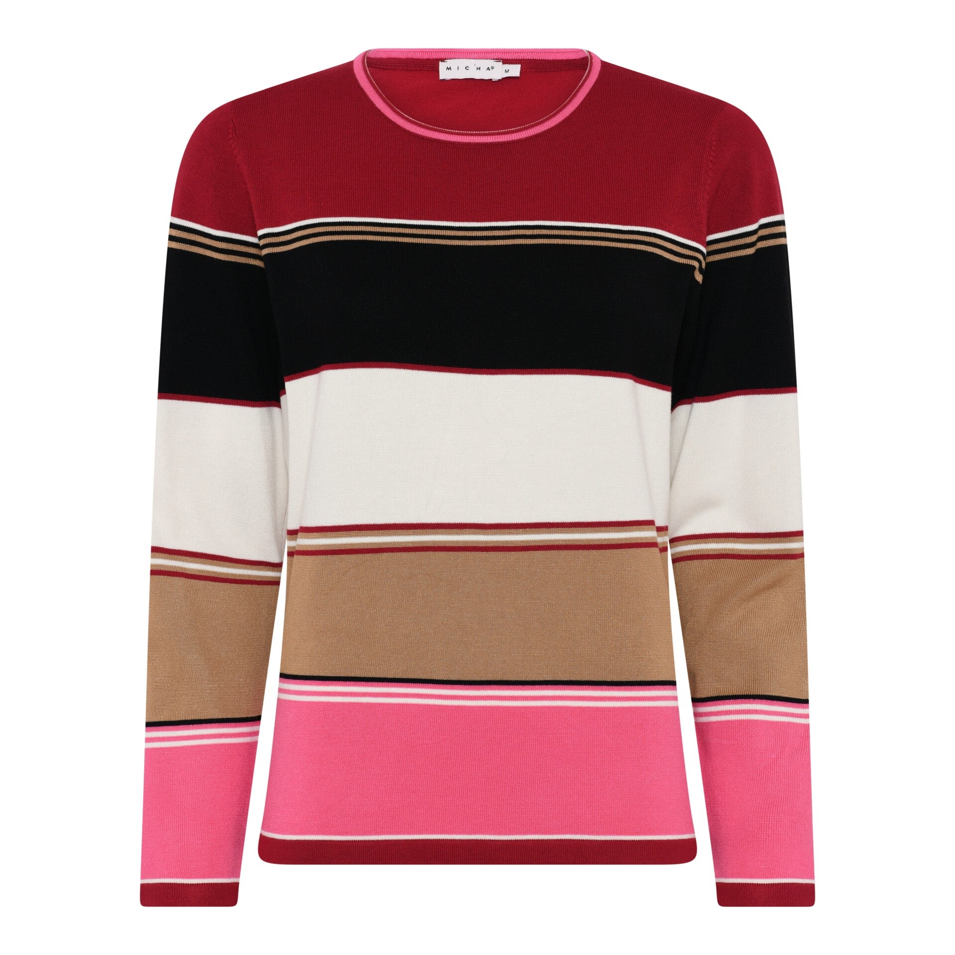 Micha trui met strepen in diverse diktes en kleuren. De pullover heeft een ronden hals en lange mouwen. Normale pasvorm.