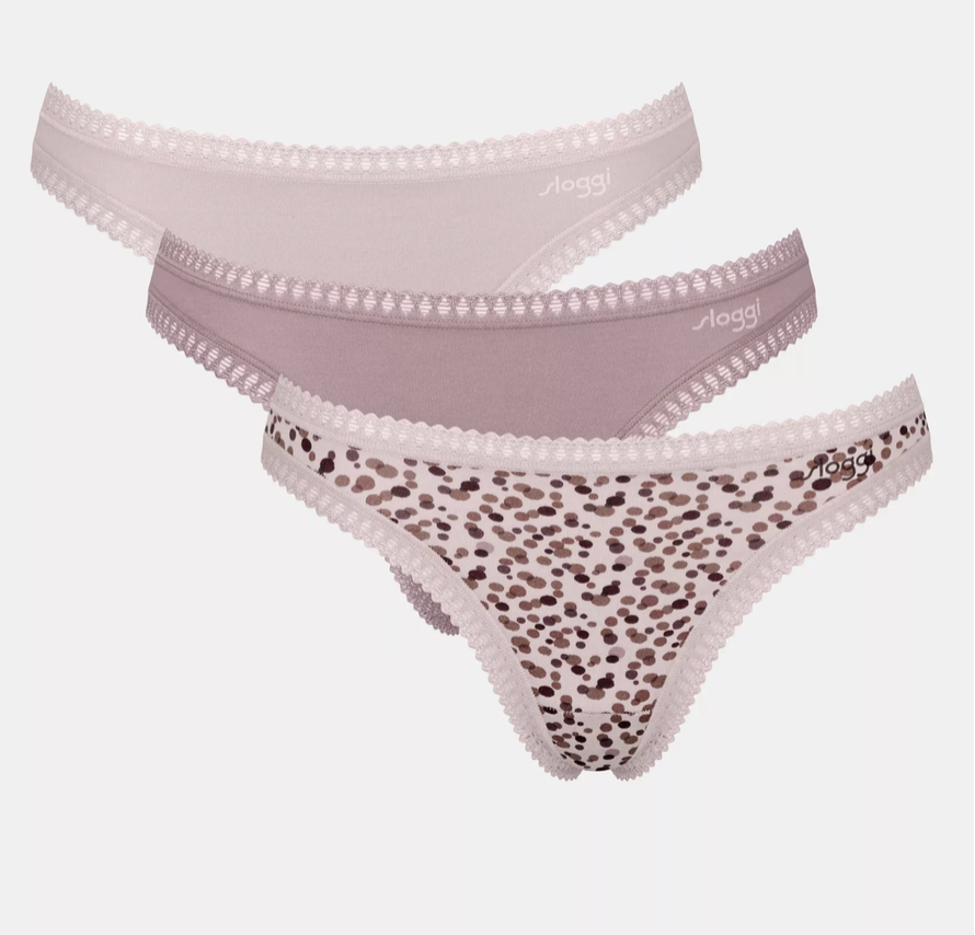Mooi 3pack strings uit de GO Crush collectie. De GO Crush collectie van Sloggi is de essential in je kledingkast. Deze moderne variant van de multipacks is gemaakt van GOTS katoen en heeft een kanten randje, met een slip met een mooie print in elke verpakking.