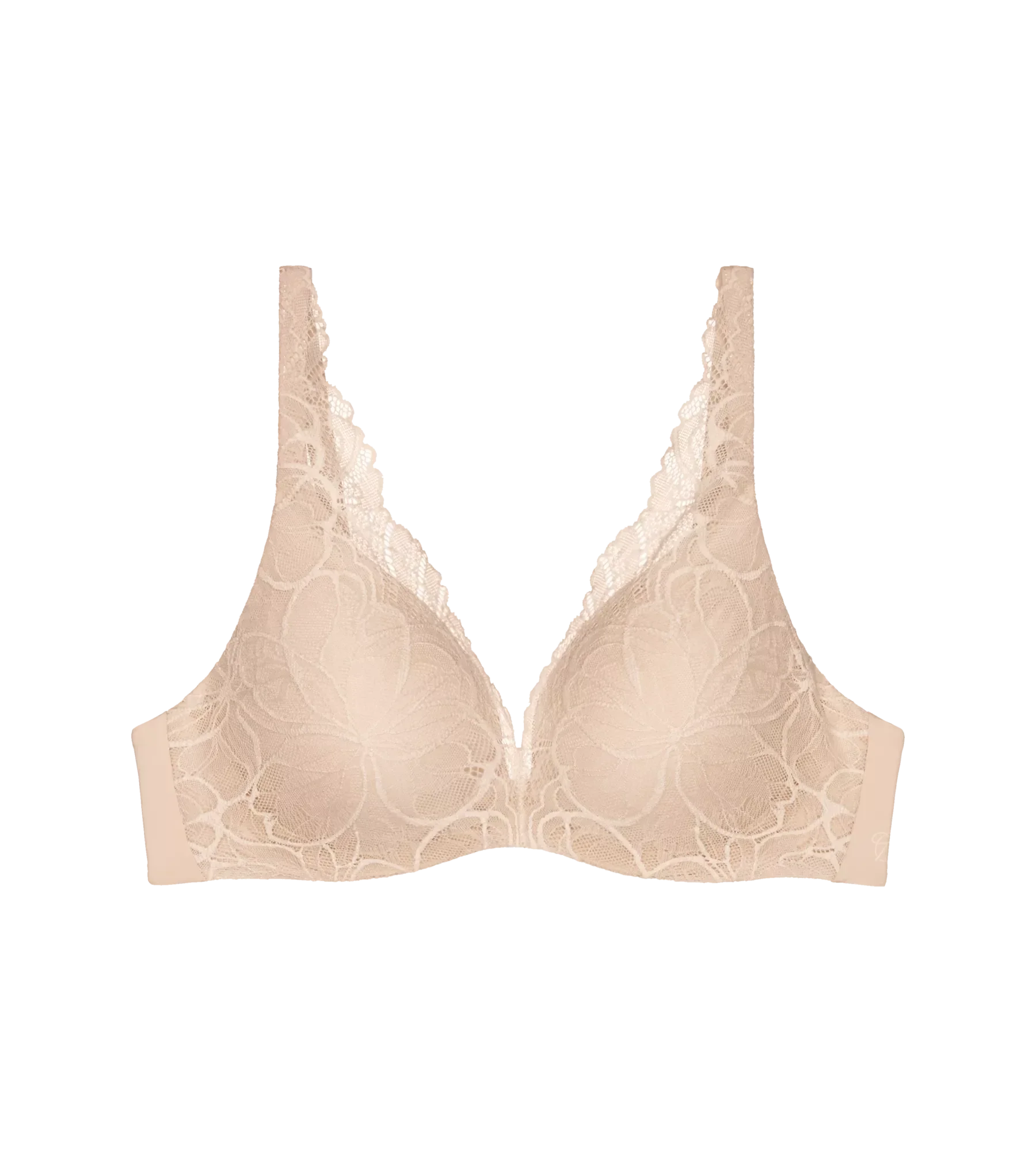 - De taps toelopende cupranden sluiten naadloos aan op de borsten, waardoor het decolleté onzichtbaar is onder kleding