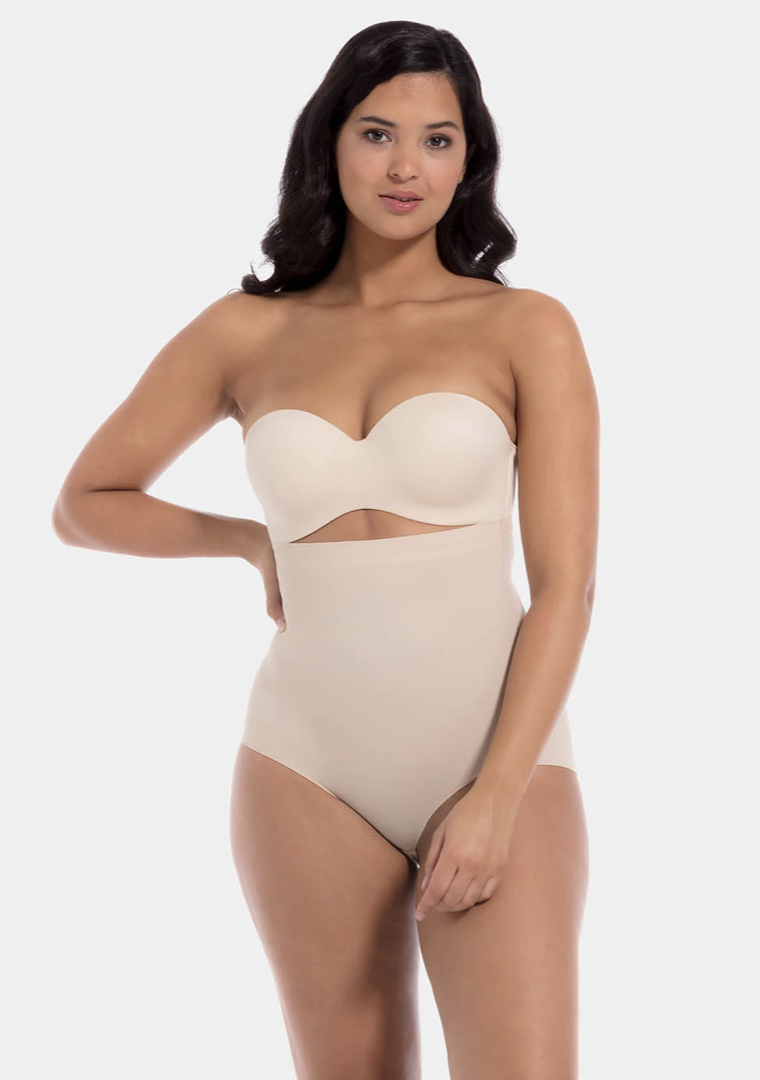 De Maxi Sexy Hi-Brief is gemaakt van glad en naadloos materiaal en geeft een sterke correctie aan de buik, taille en rug. Door het naadloze materiaal is de bermuda onzichtbaar onder kleding. Comfortabel shapewear om iedere dag te dragen! Het silicone in de taille zorgt er voor dat de Maxi Sexy Hi-Brief perfect op z'n plek blijft zitten. Beschikbare maten gaan tot 4XL! Vormende slip met hoge taille Stevige vormgeving van de buik, taille en rug Naadloze randen voor een onzichtbare look Krachtige en gladde gerecyclede stof Siliconen rand aan de bovenkant om afrollen te voorkomen Katoenen kruisjevoering