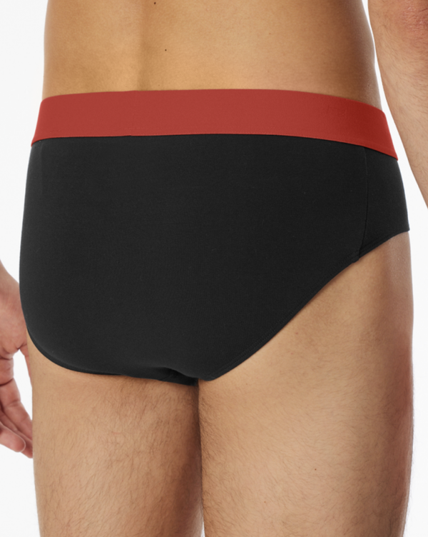 - zwarte herenslip rio in een set van 3 met gekleurde geweven elastische tailleband (zwart, roodbruin, rood)