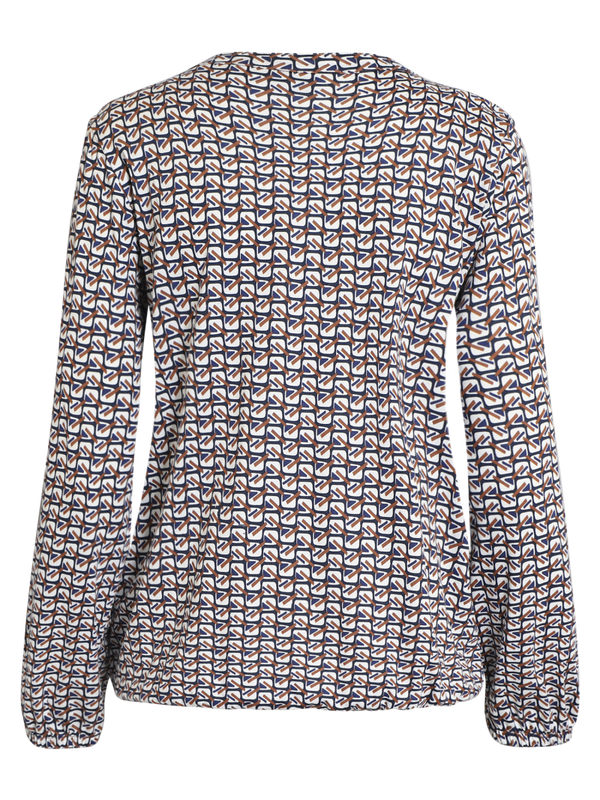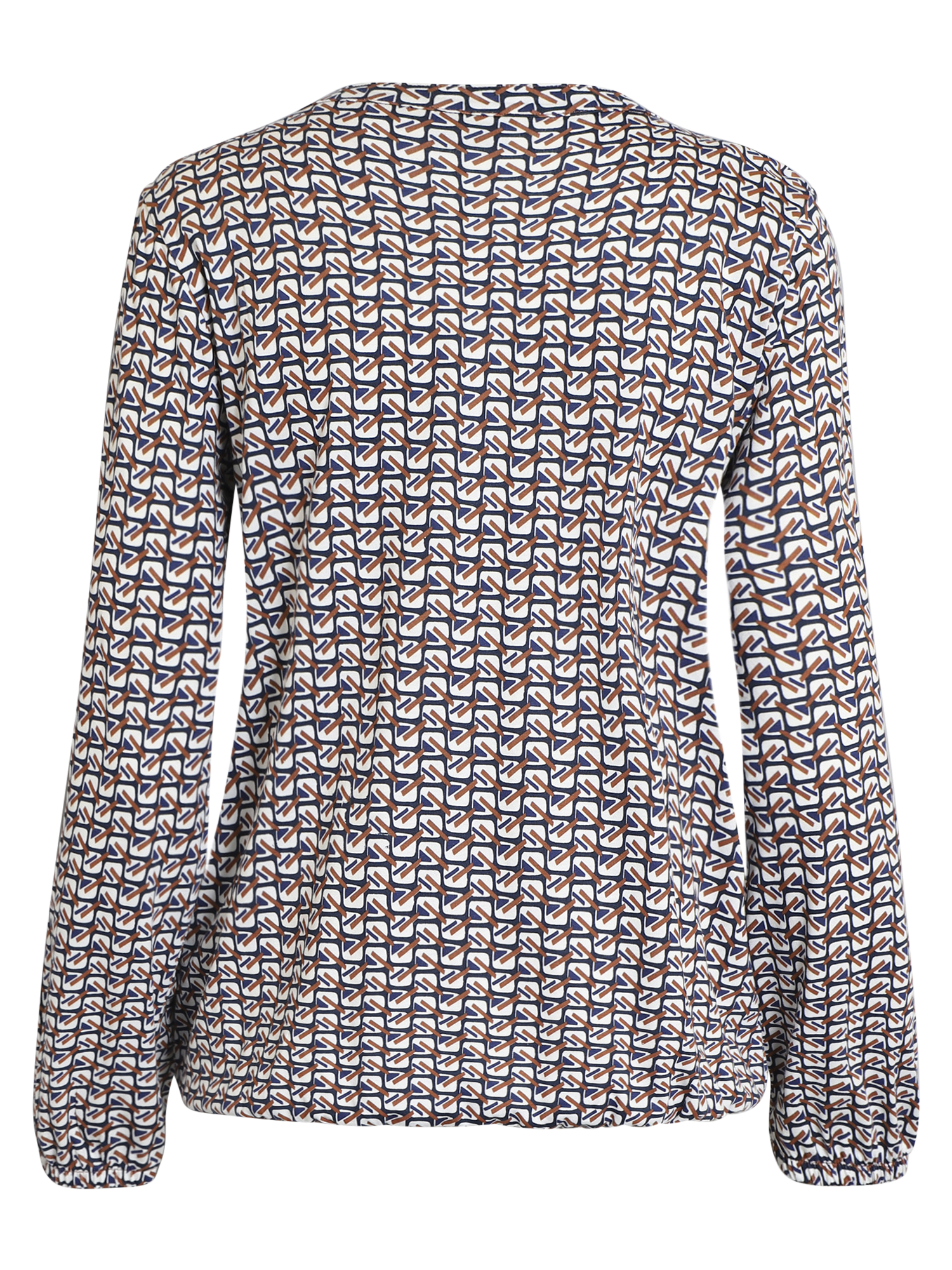 Mooie en schattige blouse met een print. De blouse heeft een knoopje bij de kraag, elastische boorden aan de mouwen en aan de onderkant.