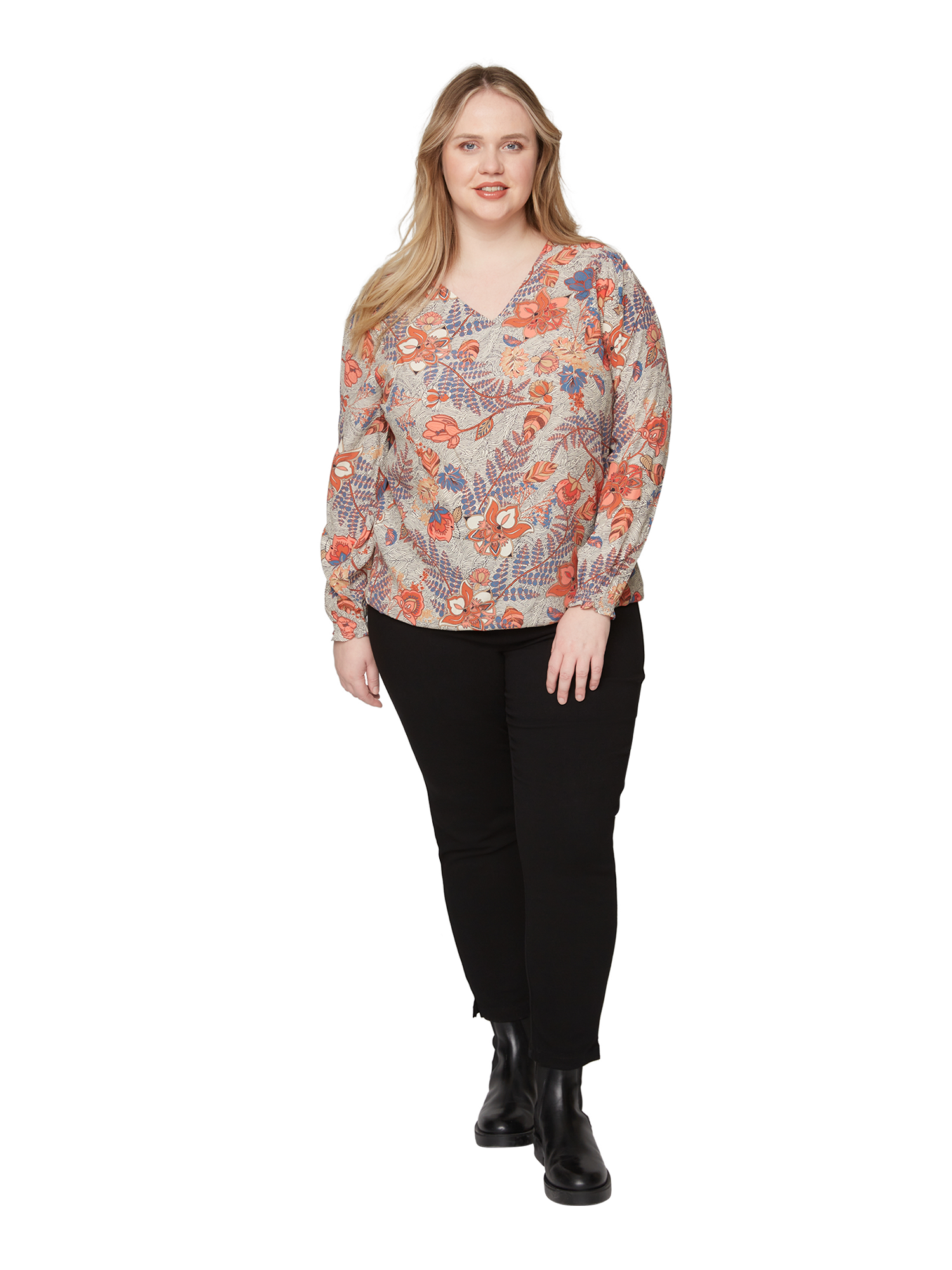 Deze blouse van Ciso is van een stevige viscose kwaliteit en heeft een beige kleur. De blouse heeft elastieken bij de mouwen, manchetten en zoom. V-hals. Een simpele maar vrouwelijke blouse die elke vrouw geweldig zal staan. Merk op dat CISO plus-size is en daarom 1-2 maten groter dan dezelfde maat voor onze andere merken.
